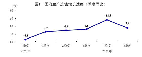 分季度看,一季度同比增长18.3%,两年平均增长5.0%;二季度增长7.9%,两年平均增长5.5%。