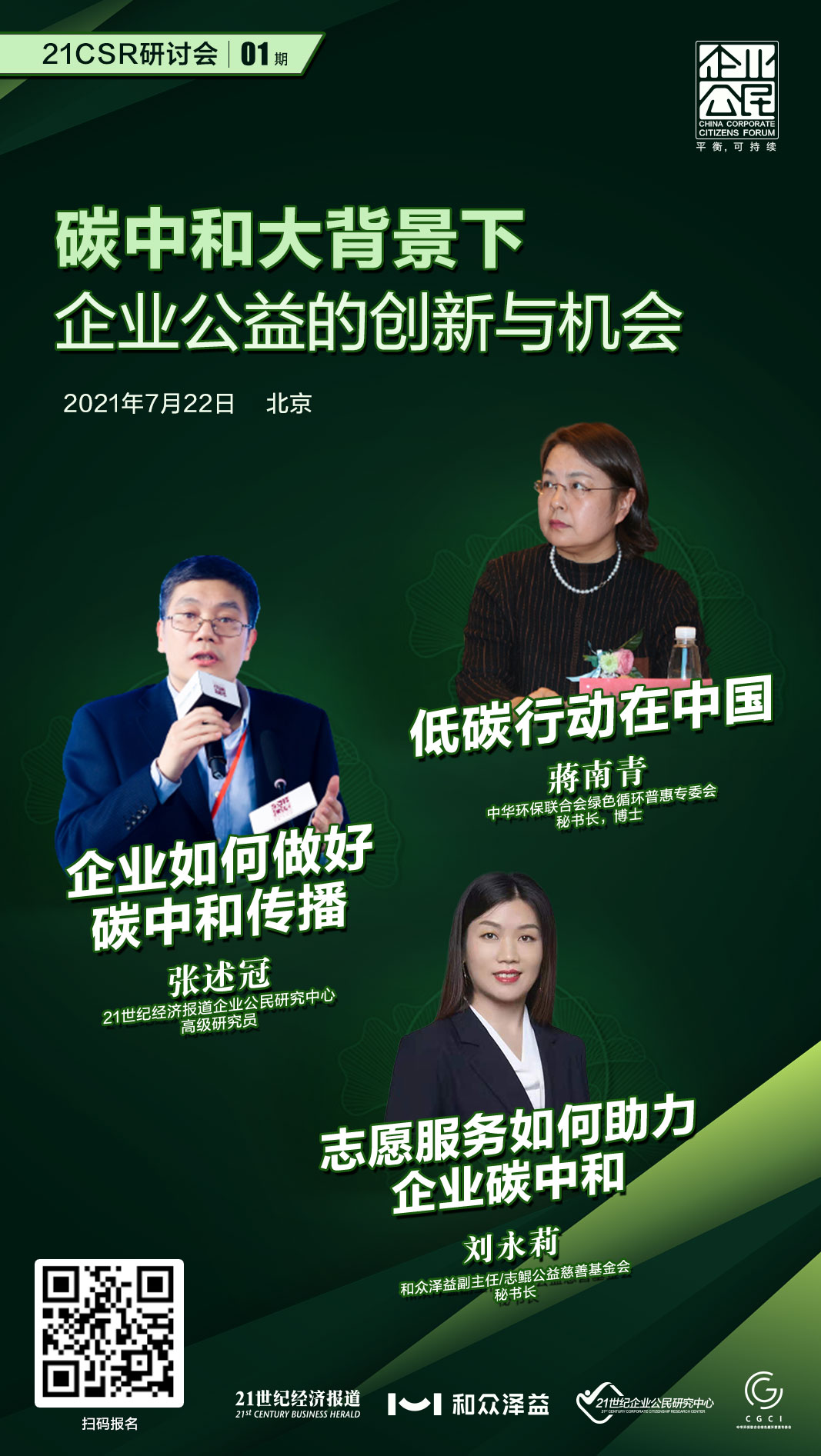 由21世纪企业公民研究中心与和众泽益联合相关部门及专家发起本次研讨会活动,拟与大家一起努力,共同助力“3060”双碳目标的实现。