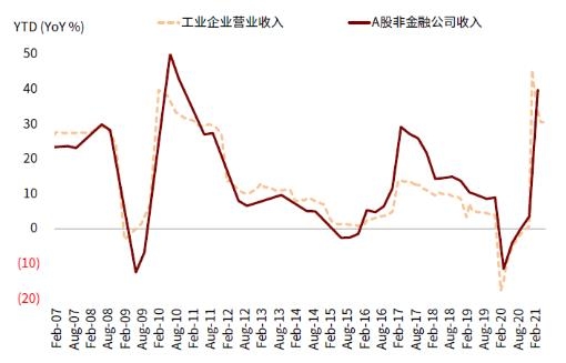 工业企业与非金融公司营收增速对比 来源:中金公司