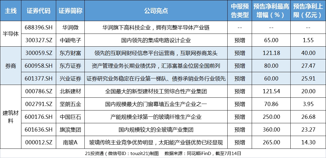 3.各细分行业分化明显,加上业绩持续性存在分歧。因此今年的中报行情,除了关注业绩高速增长的行业,还要注意在板块上精细布局。例如电子行业中的半导体板块,金融行业中的券商板块,还有建材行业中的玻璃、消费建材、玻璃、玻纤等细分行业。