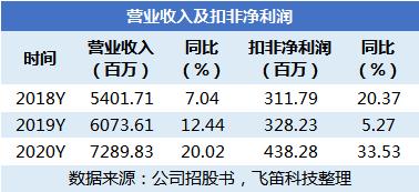 先来看公司的营收情况。报告期内,公司的业绩整体为增长趋势。2020年,实现收入72.9亿元,同比增长20.02%,扣非净利润4.38亿元,同比增长33.53%,业绩较往年提速。