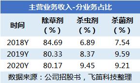 润丰股份成立于2013年,属于化学农药制造行业,公司主营业务为农药原药及制剂的研发、生产和销售。根据中国农药工业协会的统计,2018年至2020年,公司销售额分别位列中国农药行业第4名、第3名、第3名。报告期内,公司收入95%以上来自出口。