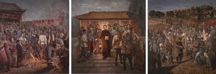 观此三联历史画,一种感动油然而生,不禁让人想起毛主席的名言“星星之火,可以燎原”。这种象征中国革命的燎原之势,如今又迎来新的“中国梦”和三农改革的持续深化,中国农民在建党百年之际又迎来并快乐走向全面建成小康社会的康庄大道。历史的一页值得永远铭记,正是“不忘初心,继续前进”。