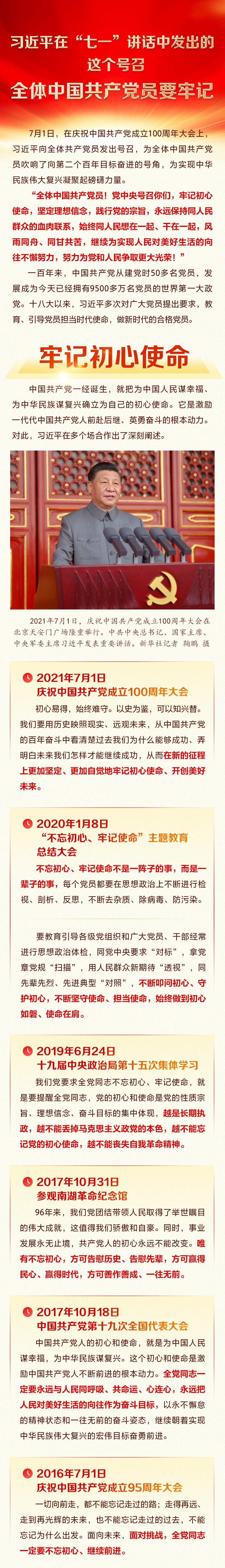 习近平在“七一”讲话中发出的这个号召 全体中国共产党员要牢记