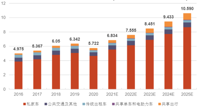 事实上,网约车市场的潜力早已被证明。根据CIC数据,2020年中国出行行业市场规模为5.7万亿元人民币,预期2025年将进一步增至10.6万亿元,期间年复合增长率CAGR为13.1%。根据CIC的预测,2025年共享出行市场规模将达到8620亿元,2020-2025年年复合增速为29.9%。言下之意,共享出行渗透率仍在持续提升。