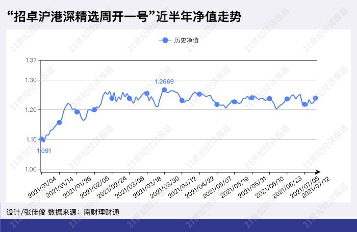 根据南财理财通数据,该产品最近3月(今年4月至今)年化收益率仅为4.7%,而招银理财4月21日发布的该产品一季报显示,过去3个月年化收益率达到66.42%。由此可见,“招卓沪港深精选周开一号”近半年的收益表现大部分来自于一季度的贡献。此外,该产品也在3月16日发布了投资经理变更公告。产品的业绩表现还有待拉长周期进一步观察。