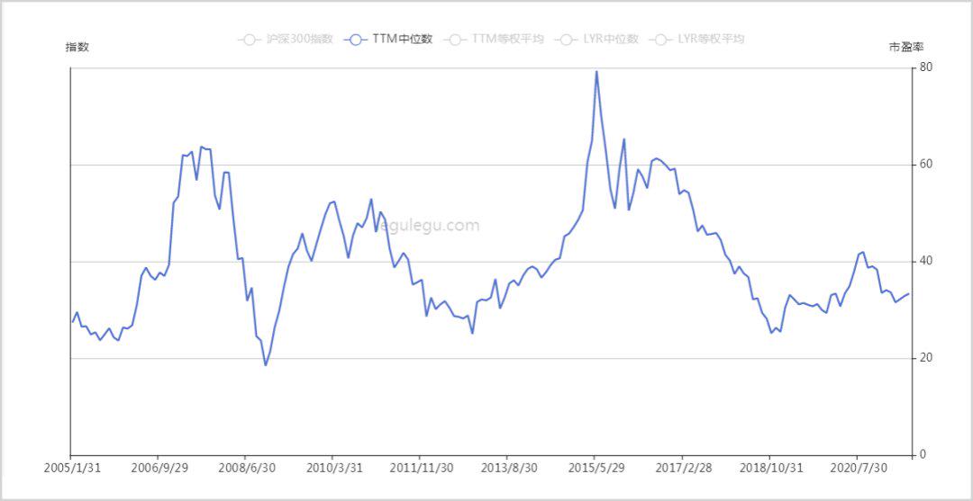 目前全A股PE(TTM)中位数是32.84倍,在历史数据上的分位数是30.79%,也就是说市场整体估值处于历史较低的位置。