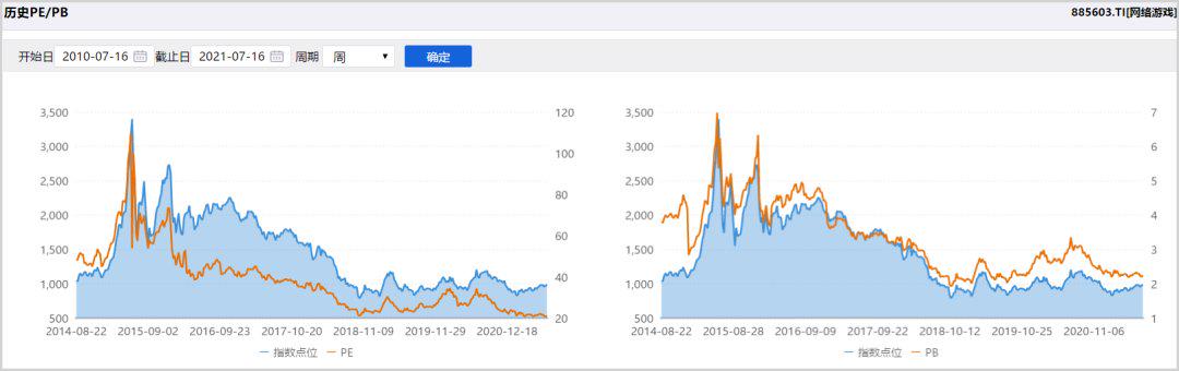 估值上看,目前行业PE只有21.01倍,PB只有2.24倍,最近两年牛市中,网络游戏涨幅极其有限,使其估值也回落到历史底部位置。