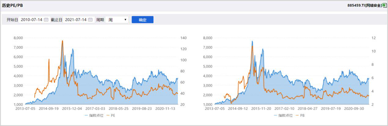 除了政策刺激之外,跟其估值较低也不无关系。目前网络安全行业的PE只有40倍,PB是3.35倍,在历史上处于非常底部的位置。