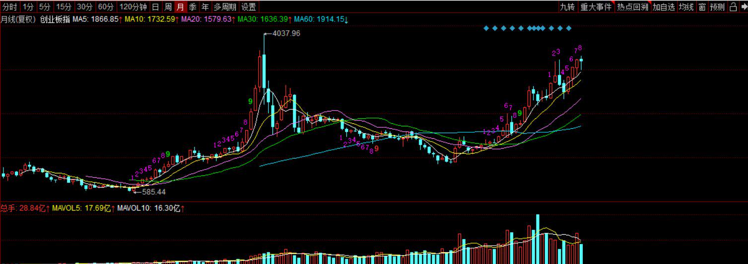 ▲创业板月线图 来源:同花顺iFinD
