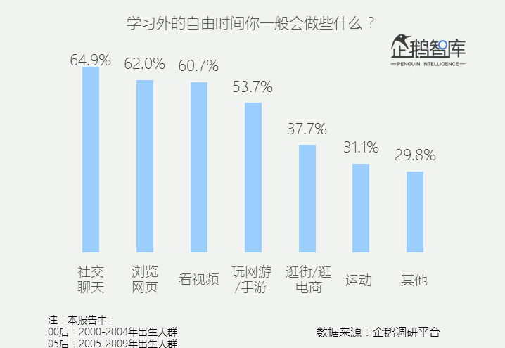 一则不算新的统计,侧面反应了电影院在00后心中的位置。2018年企鹅智酷曾针对00后、05后做过一个统计,在被问及“学习外的自由时间你一般会做些什么?”时,出现的前六个选项分别为,社交聊天、浏览网页、看视频、玩网游/手游,逛街/逛电商、运动,里面没有“去电影院”选项,唯一跟电影有关的,是看视频。