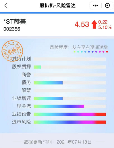 我们可以看到*ST赫美还有以下风险值得注意。
