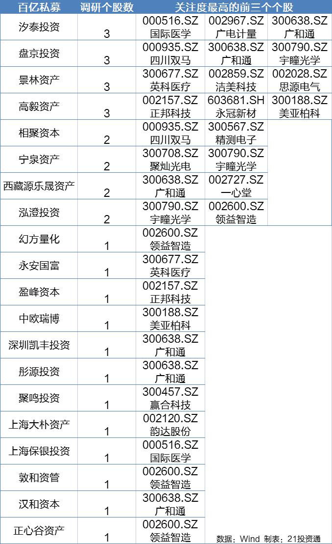 百亿私募调研名单: