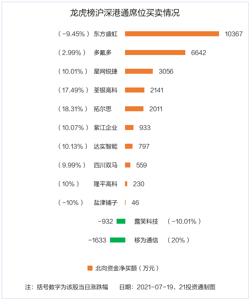 7月19日,北向资金参与龙虎榜中的个股共有12只,合计净买入2.42亿元。其中沪股通净买入1 股,净买入932.52万元;深股通净买入9 股,净卖出2 股,合计净买入2.33亿元。
