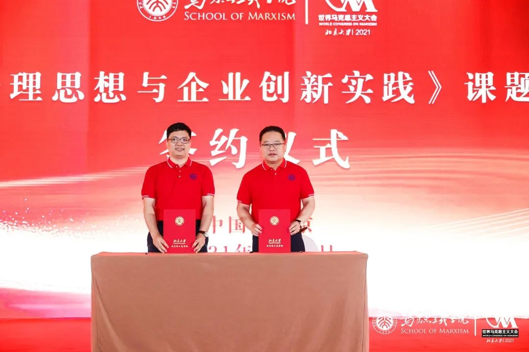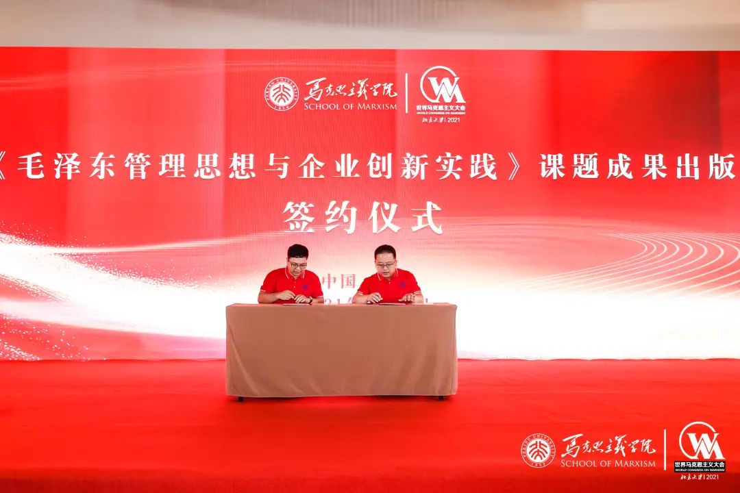 7月17-7月18日,第三届世界马克思主义大会在北京大学召开。期间,南粤基金与北京大学毛泽东管理思想高级研究班(简称“毛管班”)联合课题成果——《毛泽东管理思想与企业创新实践》出版签约仪式正式举行。毛管班建设委员会常务理事、毛管八班班长、南粤基金董事长林涛,与人民出版社责任编辑、读书会办公室负责人刘江波代表双方签约。