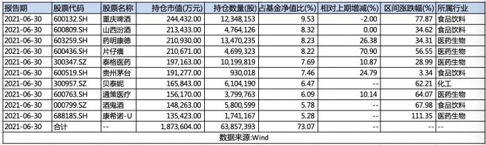 相比一季度末,加仓了康希诺-U、酒鬼酒和贝泰妮,顺丰控股、云南白药和五粮液退出了十大重仓股,还增持了片仔癀、重庆啤酒等。