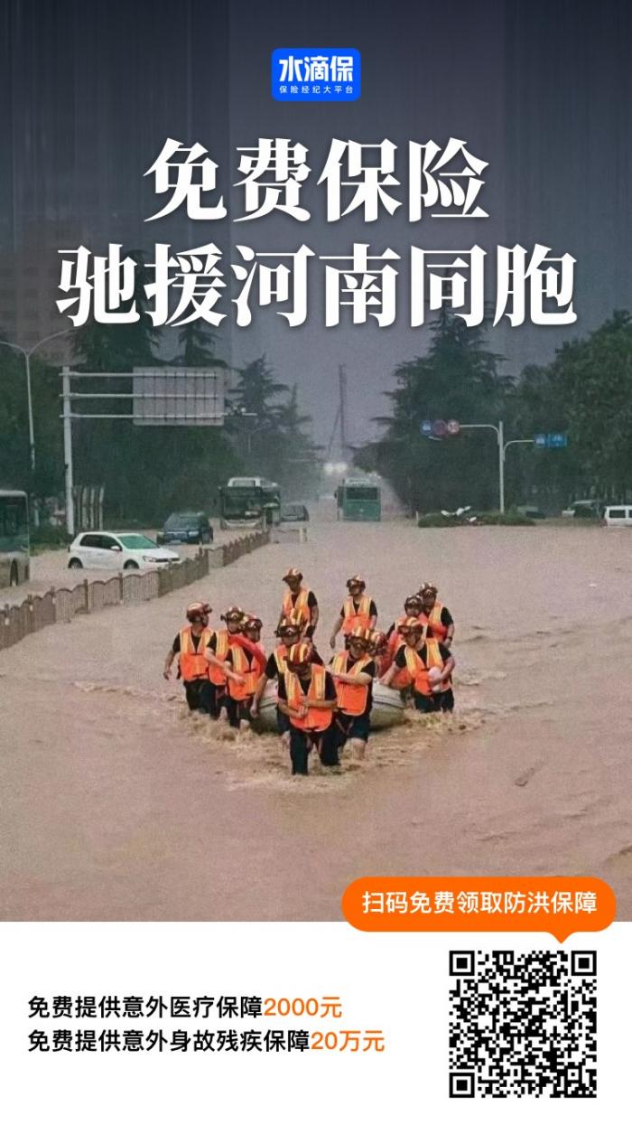 水滴保向河南等地同胞赠送“水滴防洪无忧保”,最高保额20万元