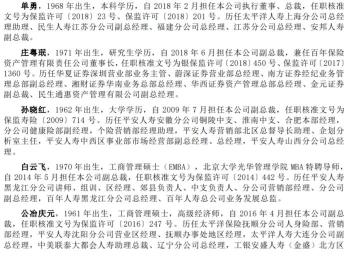 公开资料显示,单勇于2017年空降百年人寿担任临时负责人,并于2018年2月获批正式出任该公司执行董事、总裁。而在加入百年人寿之前,单勇历任太平洋人寿上海分公司总经理助理、民生人寿江苏分公司副总经理、福建分公司总经理、江苏分公司总经理,安邦人寿副总裁等职务,具有丰富的保险从业经历和经营管理经验。