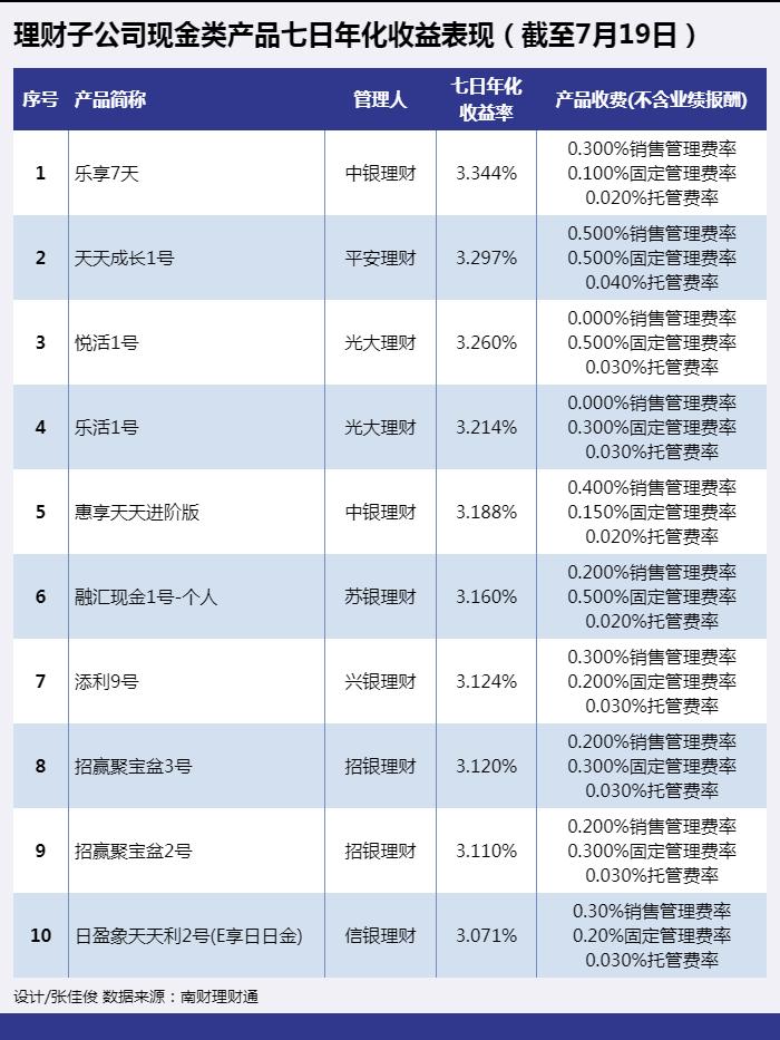 据南财理财通数据,截至7月19日,“招赢聚宝盆3号”七日年化收益率为3.120%,“招赢聚宝盆2号”七日年化收益率3.110%,均进入本次榜单前十。