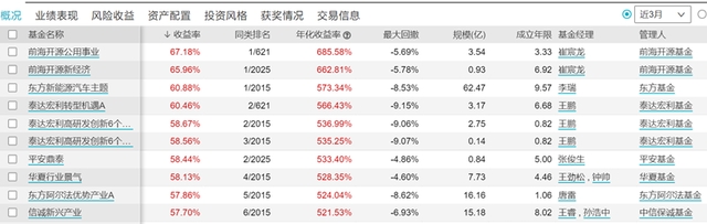 锂电池方面,按照wind数据索引,近3个月与锂电池相关的公募基金多达925只,其中28只收益率超过50%。这28只基金排名前三的重仓股中,配置有宁德时代的有15家、亿纬锂能13家。