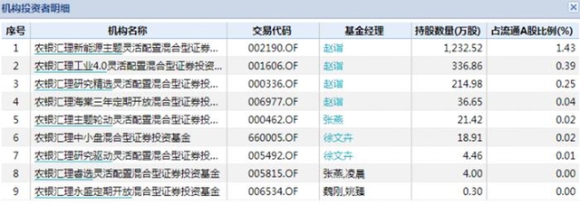 而在二季度,除了上述农银汇理工业4.0混合基金持股略减外,赵诣管理的农银汇理新能源主题、农银汇理研究精选等三只基金均处于增持状态,其中新能源主题基金持股数量从830.24万股增加至1232.52万股。