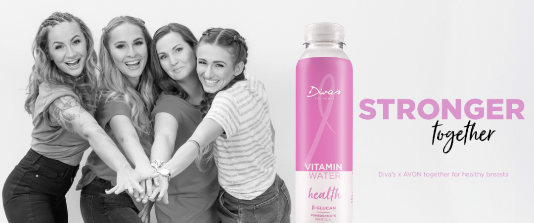 此外,Diva’s格外关注女性健康和情感需求。去年夏季,Diva’s与斯洛伐克的雅芳化妆品公司合作,通过AVON March for Healthy Breast项目,推出限量版HEALTH维他命水,为健康的乳房而战,从女性角度出发,倡议在艰难情况下的互帮互助,共同帮助遭遇乳腺癌的女性患者。