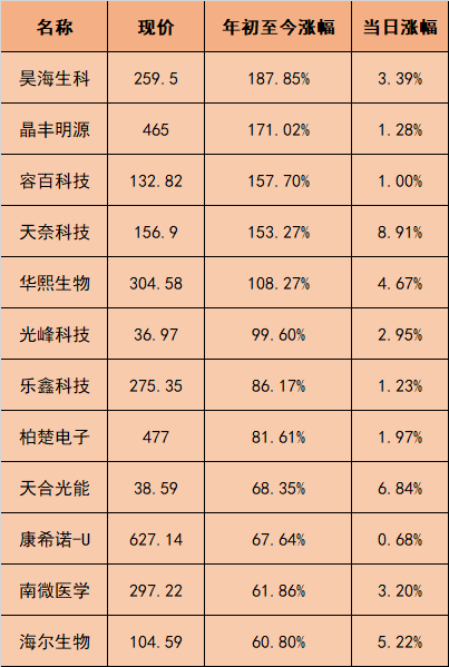从指数成分股的表现来看,昊海生科以187.85%的涨幅位列年内涨幅第一位。晶丰明源、容百科技、天奈科技年内股价涨幅均超过了150%,华熙生物年内股价实现了翻倍。此外,还有7只成份股年内涨幅超过60%。
