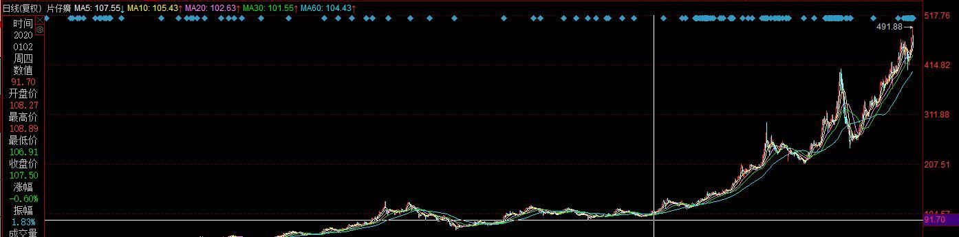 行情显示,从2020年初到现在,片仔癀股价累计上涨超320%,目前市值已经突破2700亿元。