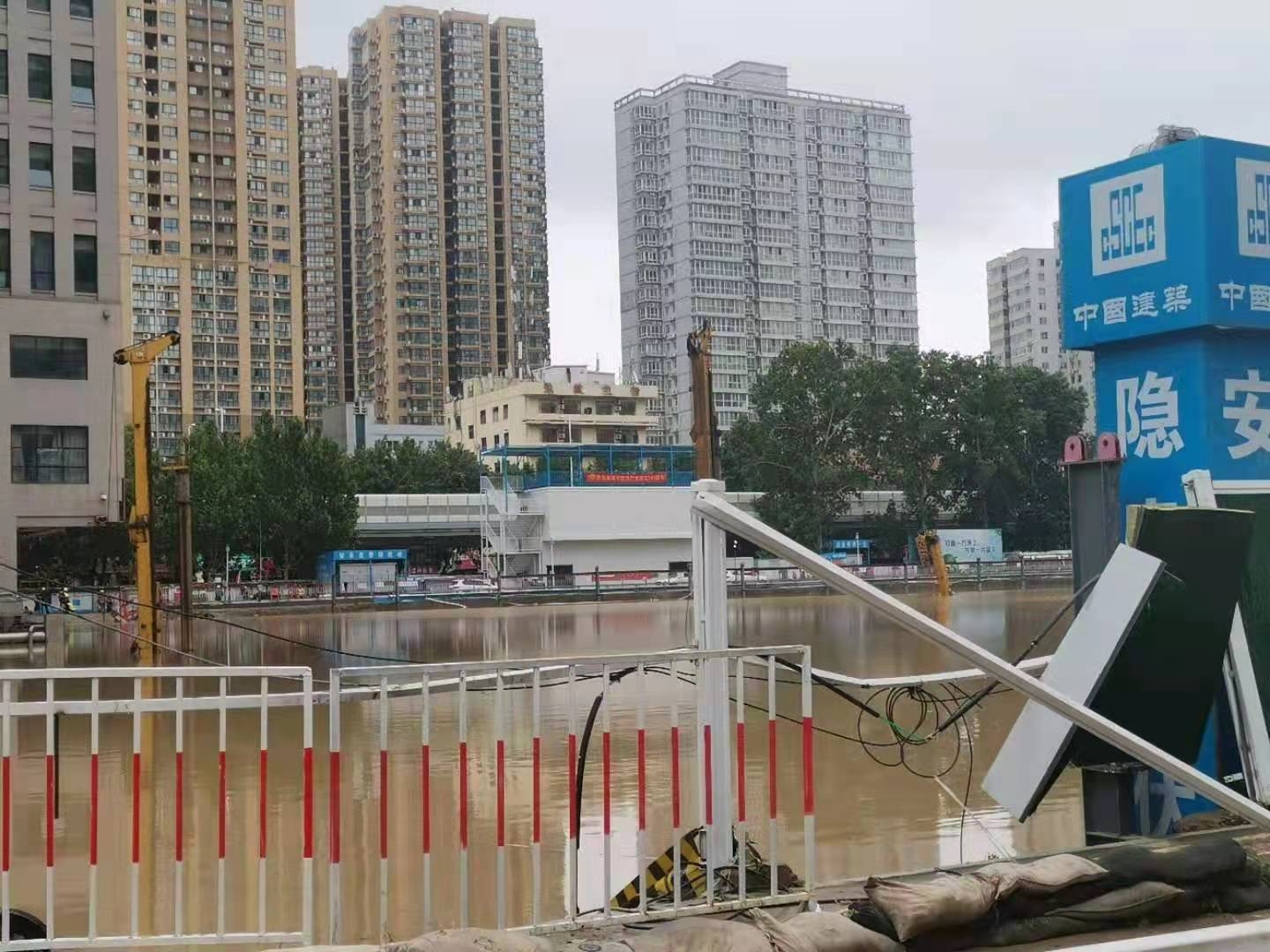 此次受影响较大的是其河医院区,由于正好位于立交桥的位置,积水问题严重,20日下午的时候,医院的积水就没过膝盖,稍晚时水都把一楼淹没了。