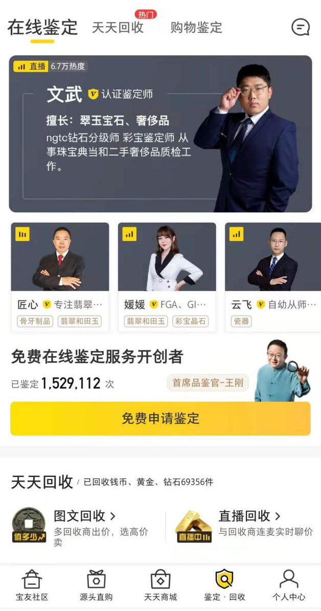 像天天鉴宝这样的鉴宝直播平台,现在有很多,加上玩物得志、微拍堂,在鉴宝直播行业已经是妥妥的第一梯队,平台活跃用户都早已突破百万。