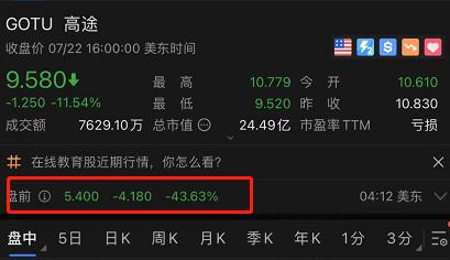 中概教育股盘前随之也集体重挫,新东方、好未来教育集团暴跌近50%,高途最多跌超52%。