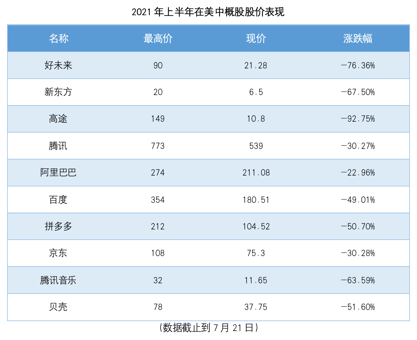 反观美国中概股,截至2021年7月5日,赴美IPO的中概股为36家,总筹资规模为136.72亿美元,其中有19家已经破发,占比达到52.78%,在美中概股中,百度、拼多多等也跌下去一半市值,高途、好未来等跌掉80%以上的市值。
