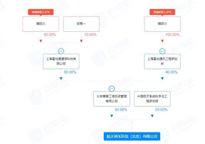 启信宝数据显示,航天神禾成立于2009年7月1日,注册资本1500万元,公司股权结构是北京赛普工信投资管理有限公司(下称北京赛普工信)与中国航天系统科学与工程研究院各占50%,而北京赛普工信是由上海星地通通信科技有限公司(下称上海星地通)持股60%、上海星地通讯工程研究所(下称上海星地研究所)持股40%的一家公司。