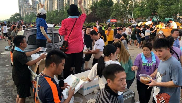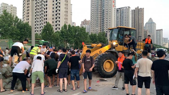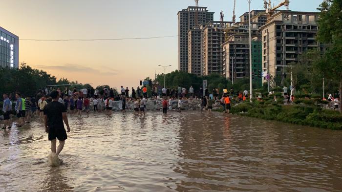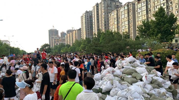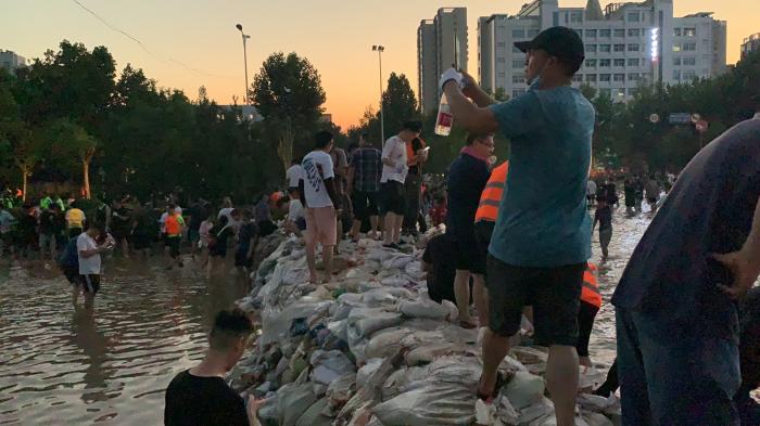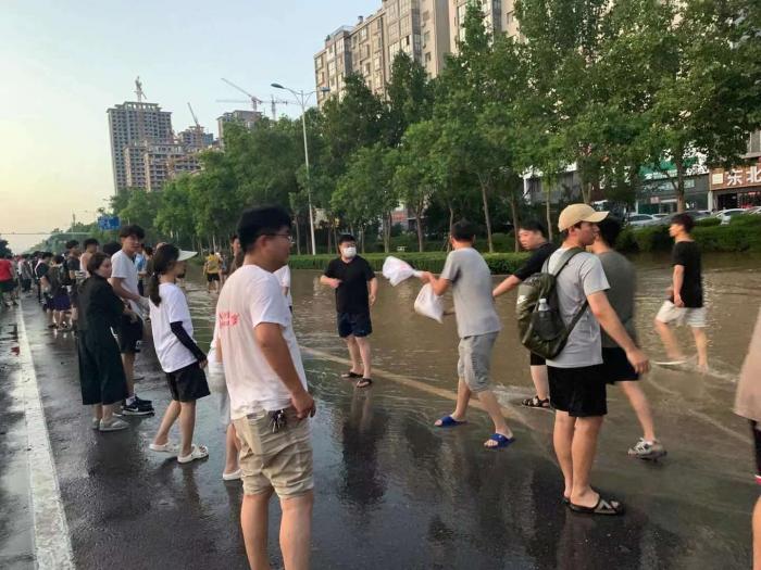 7月24日15时46分,新乡市发出紧急动员令,号召志愿者马上前往荣校东路和新中大道交叉口集结,并沿荣校东路一字排开,紧急筑坝拦水。