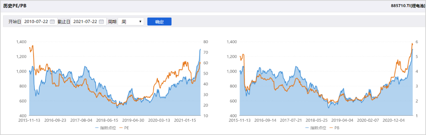 大幅上涨之后,锂电池行业目前的估值到了非常高的位置,PE62倍,PB5.9倍,都处于历史顶部位置。但是良好的业绩趋势和未来前景,使得市场对这类行业的高估值有了更高的容忍度。