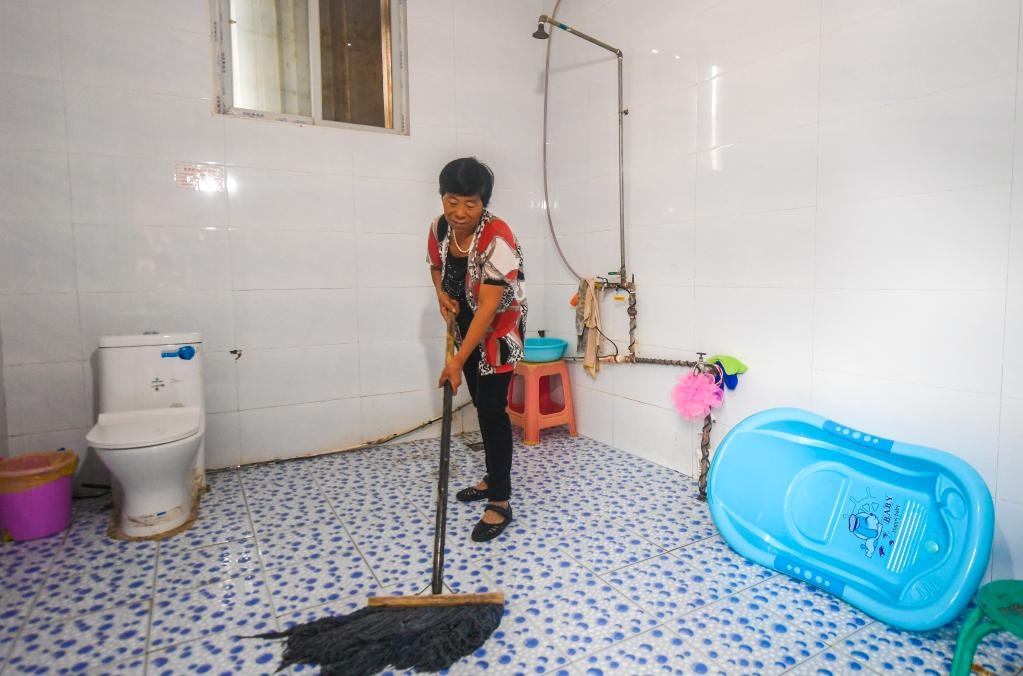 2019年9月10日,河北省永清县三圣口乡第四村村民在自家厕所打扫卫生。新华社记者李晓果摄