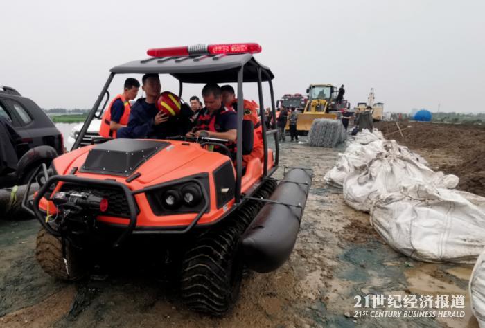 图:开往一线的全地形水陆两栖救援车