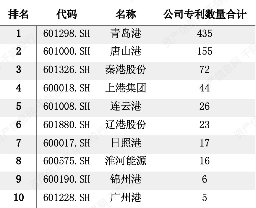 表 国内专利排名前十港口公司