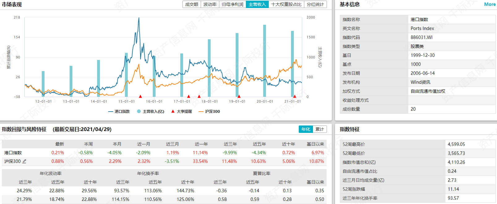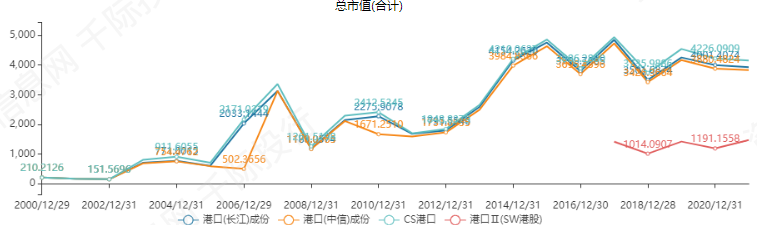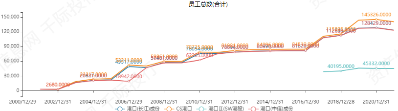 截止2021年4月29日,港口板块(中信)沪深成分股个数为18,在近几年中呈稳定趋势。企业总市值在近几年呈上升趋势,2021年4月29日,企业总市值为4155.9727亿元,企业员工总数达140514人。