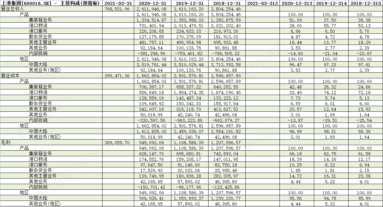 表 以上港集团为例分析主营结构
