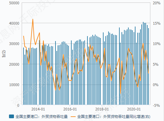 图 主要港口外贸货物吞吐量及增速