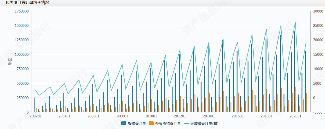港口是重要的交通基础设施,港口货物吞吐量与国民经济发展密切相关,港口发展受国家政策影响较大,港口是重要的交通基础设施,是由一定范围的水域和陆域组成的区域,港口作为货物运输和贸易流通的枢纽口岸,其经营货种主要分为集装箱、干散货和液体散货。