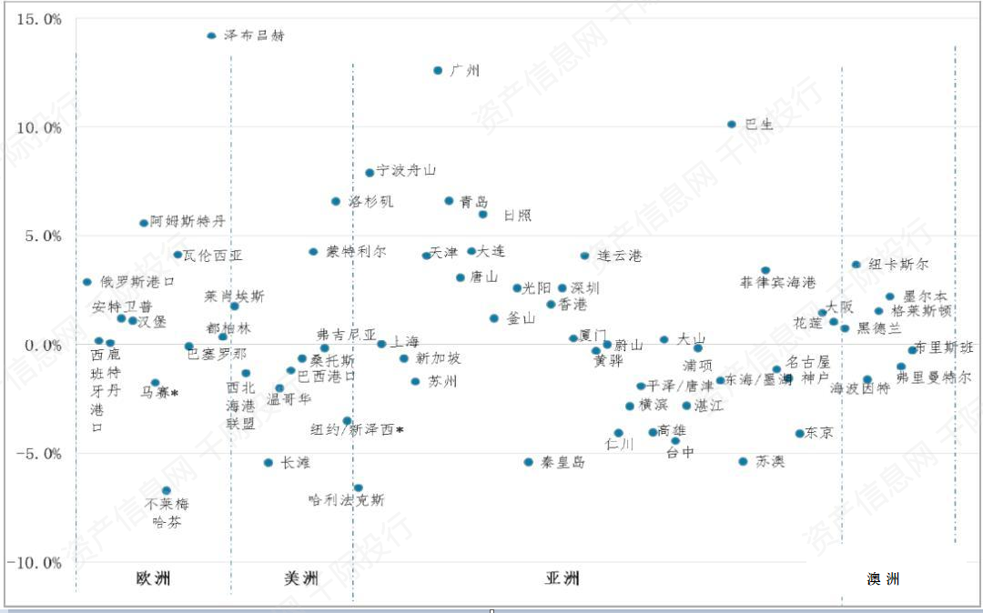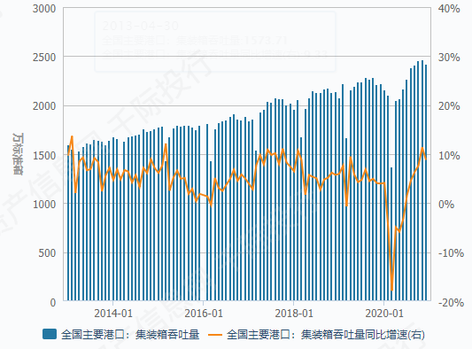 图 主要港口集装箱吞吐量及增速