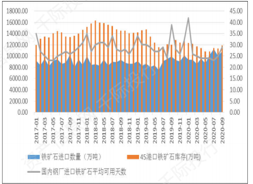 图 中国铁矿石进口及库存情况
