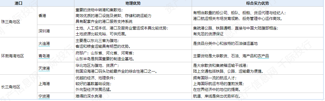 (2) 宁波港:公司是中国大陆重点开发建设的四大国际深水中转港之一,在区位、航道水深、岸线资源、陆域依托、发展潜力等方面均具有较大的优势,是世界航线最密集的港口之一,也是世界各大船公司必靠母港之一。