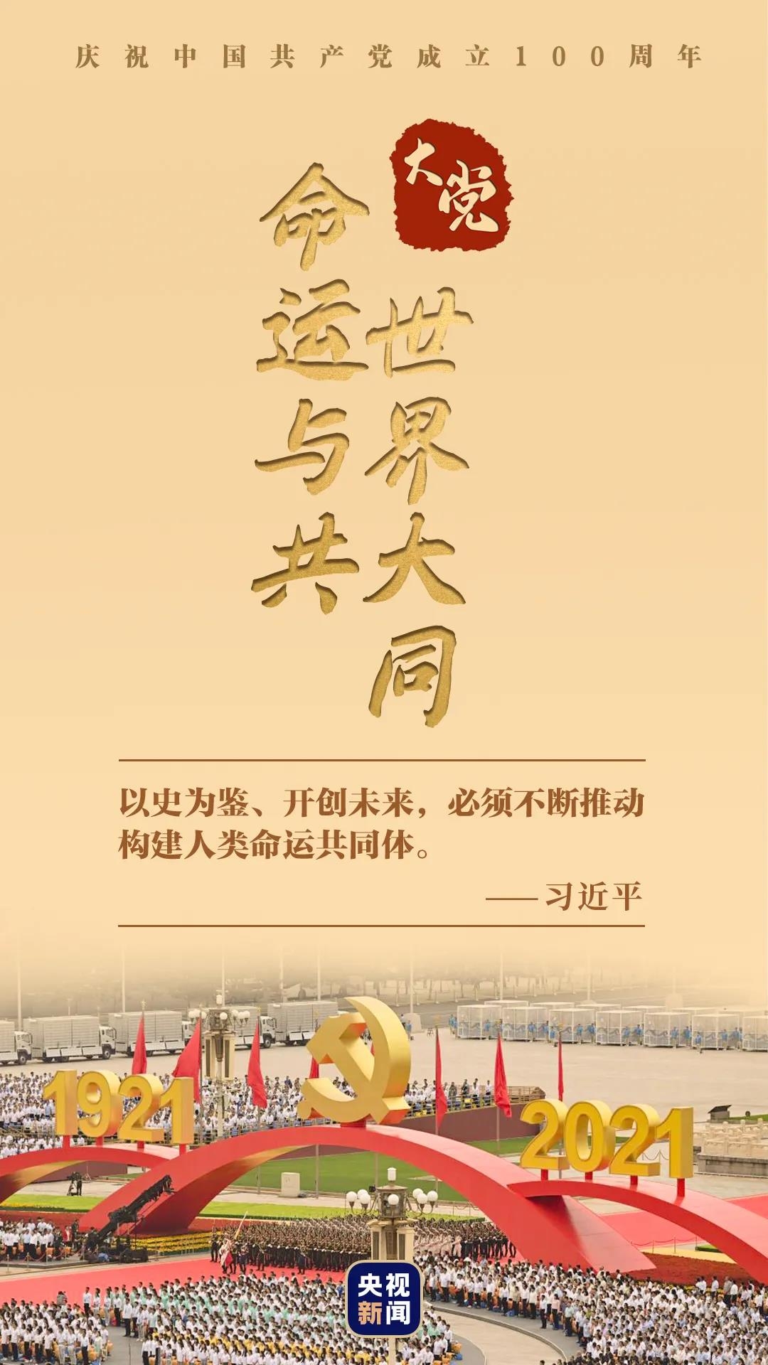 “以史为鉴、开创未来,必须不断推动构建人类命运共同体。”习近平总书记在庆祝中国共产党成立100周年大会上给出明确答案。