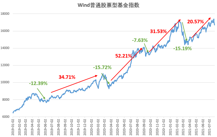 复盘Wind普通股票型基金指数2019年以来的数据,发现前几次出现较大回撤后,市场总会迎来反弹,并再次创出新高。