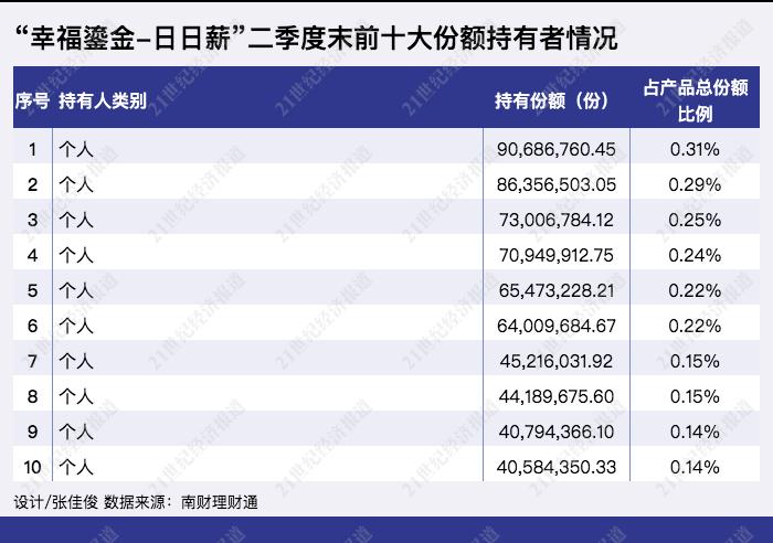 值得一提的是,广发银行披露了该产品截至二季度末的前十大份额持有者情况,前十大份额持有人类别均为个人,持有份额均超过4000万份,占产品总份额比例在0.14%-0.31%不等。这一情况在一季报中并未披露,这一披露的增加或与现金管理类理财新规有关。
