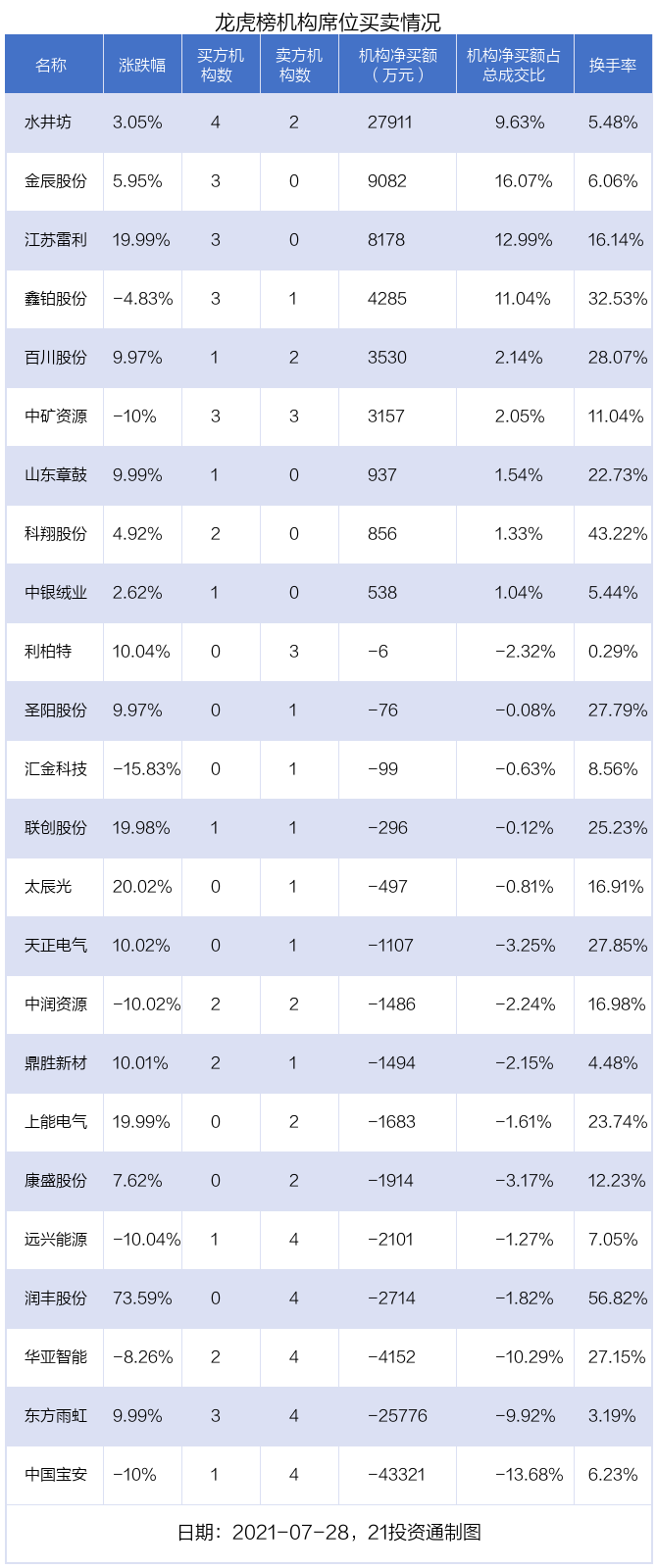 7月28日,24只个股龙虎榜出现了机构的身影,机构合计净卖出2.82亿元。具体来看,机构净买入9股,净卖出15股。