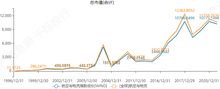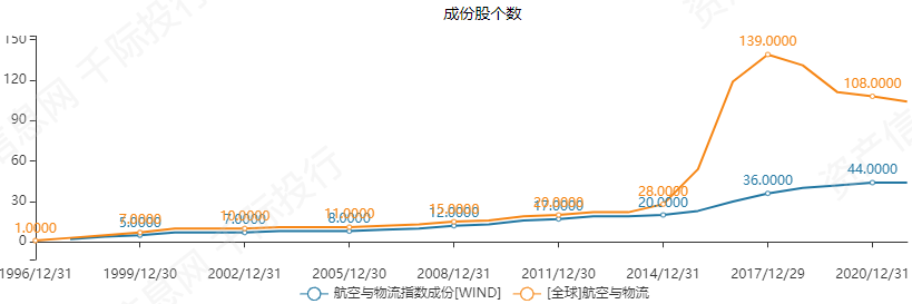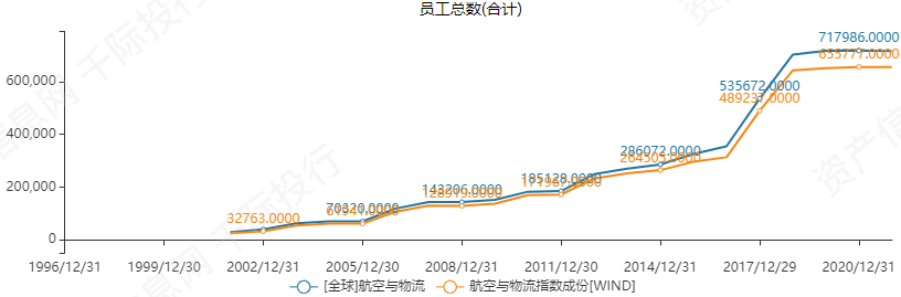 截止2021年4月22日,航空与物流板块(万德)沪深成分股个数为44,在近几年中呈上升趋势。企业总市值在近几年逐年上升,截止2021年4月21日,企业总市值为7356.6808亿元,企业员工总数达39557人。
